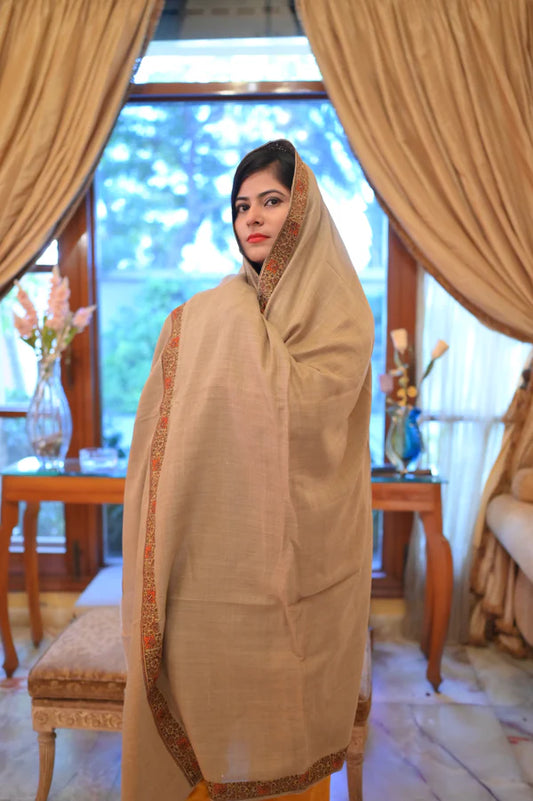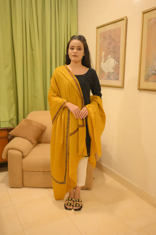 Pakistan Pure Pashmina Elegant Shawl with Gota Zari Border