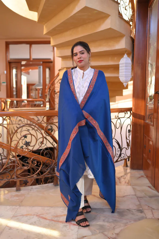 Elegant Shawl with Gota Zari Border - Royal Blue