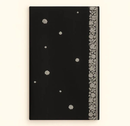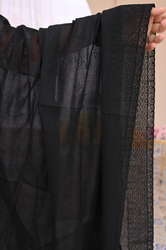 Swiss Lawn Shawl – Black with Golden Embroidery
